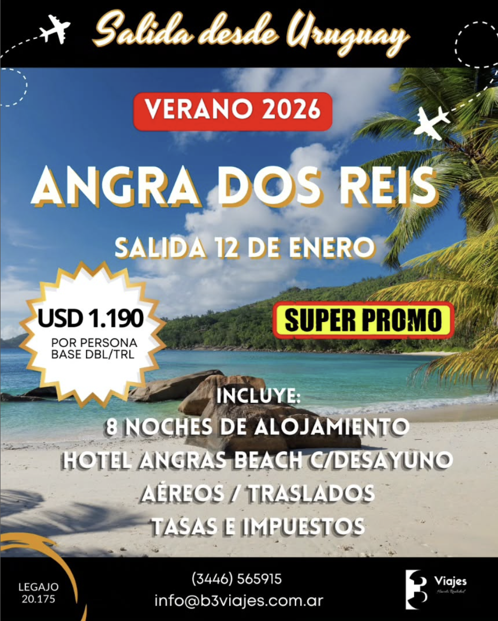 - 8 noches de alojamiento en el hotel Angras Beach
