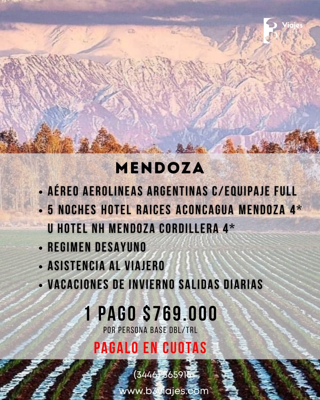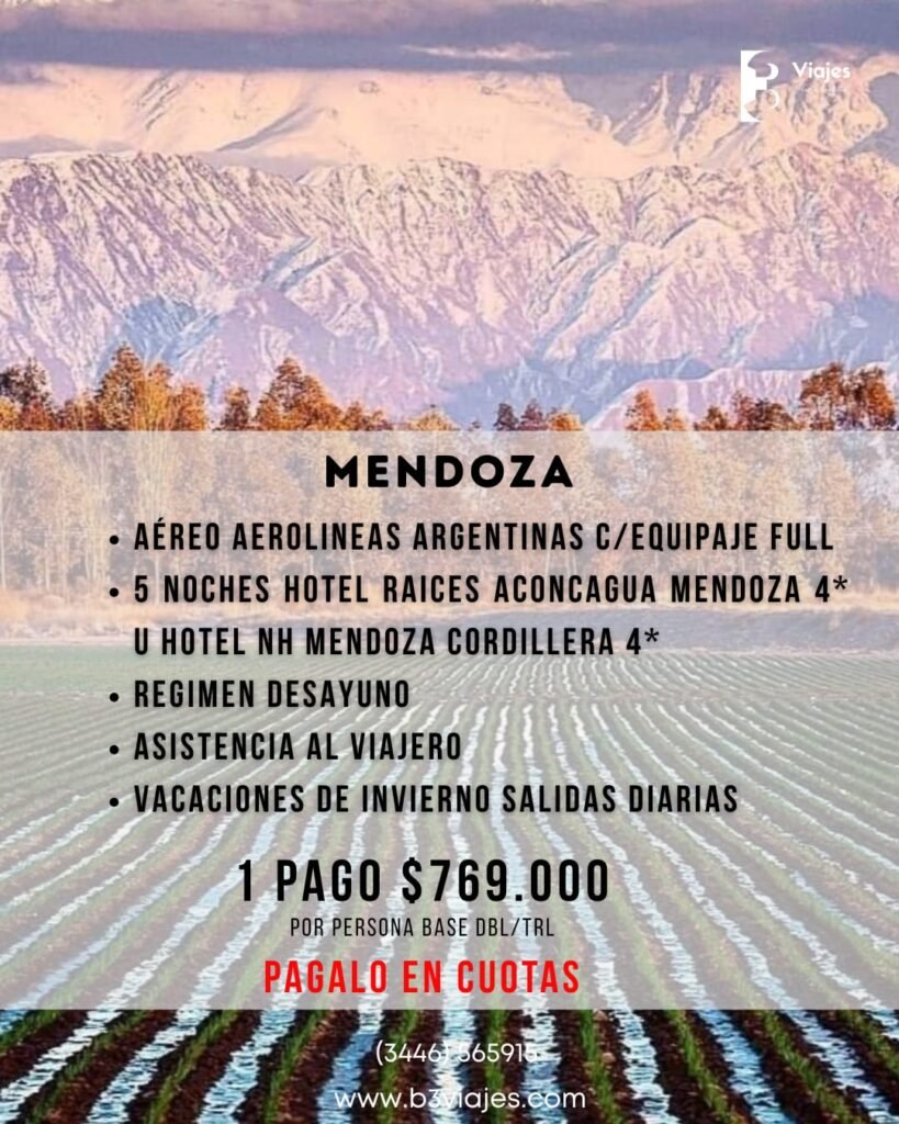 🏨 5 noches de aloj. Htl. 4* Htl Raices Aconcagua Mendoza con DESAYUNO
